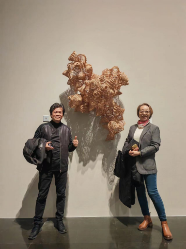 在得知作品入围后,刘境奇院长、沈卓娅教授专程前往展览现场参观打卡,在作品前驻足品鉴,对作品深挖地域文化、创新工艺表达的创作思路给予高度肯定,认为其充分展现了我院教师在传统与当代艺术融合中的探索成果。