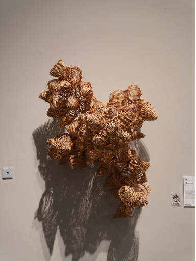 张浩鑫老师的入选作品《问田螺》,以广东传统民俗为创作内核,巧妙融合纤维艺术的“拧编”工艺,构建起文化传承与当代审美之间的对话。作品灵感源自粤语中“螺”与“攞”(意为“拿取”)的同音关联 —— 广东民间“无得食,问田螺(攞)”的说法,承载着中秋时节人们对丰收的期待与对美好生活的向往。创作中,张浩鑫老师以细腻的拧编手法还原田螺的形态肌理,既保留传统工艺的手工温度,又通过材料的张力与造型的韵律,将民俗文化的意涵转化为可触摸、可感知的艺术语言,让广东地域文化特色在国际艺术舞台上得到生动呈现。