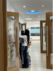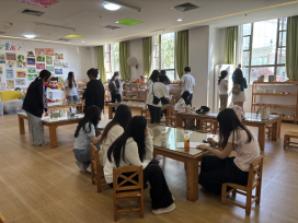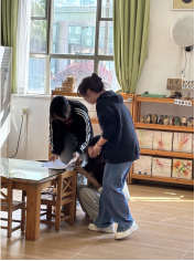 在维肯幼儿园工作人员的协助下,师生依次走访各功能区域,细致观察现有陈设布局、家具选型、软装搭配、墙面装饰及收纳系统,现场测量空间与陈设尺寸、记录材质特性与色彩方案,拍摄实景素材,并与园方沟通幼儿使用习惯、空间运维需求等关键信息。同学们以专业视角分析陈设设计的优势亮点,客观记录空间动线、安全细节、功能适配、趣味性营造等方面的现存问题,完成详实的考察记录与数据整理,为后续结课设计作业积累第一手真实资料。